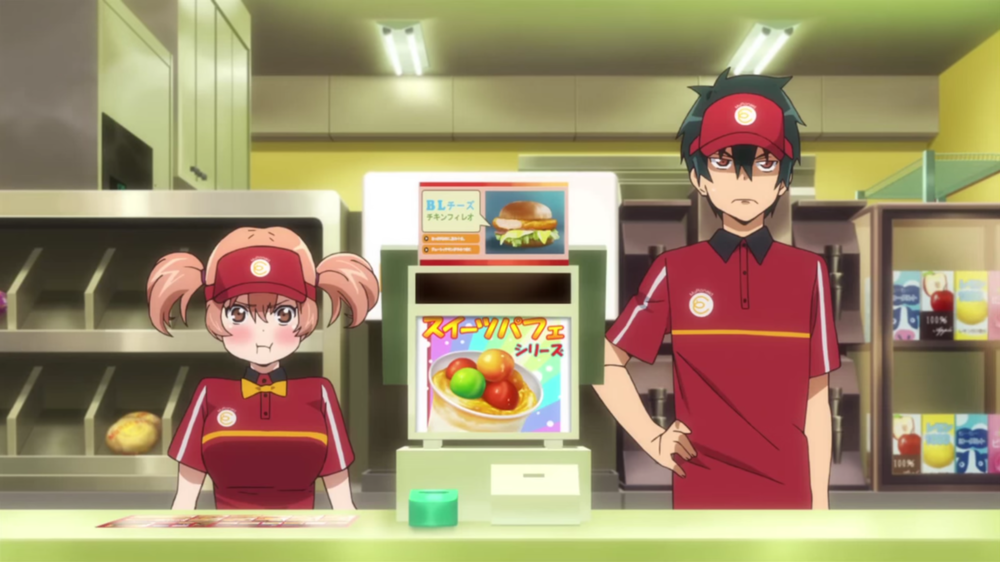 Demon Lord Satan and General Alsiel are in the middle of taking over the land of Ente Isla with their enormous army of demons when Emilia the Hero strikes and defends her homeland of the evil forces. Her presence forces Satan and Alciel to open a dimensional portal to another world for safety. Upon landing in Tokyo, Satan and Alciel try to blend in as humans by suppressing whatever magical power they have left. Satan takes on the name Sadao Maou and takes a part time job at MgRonald’s. From there, his goal is to become the biggest position in the world!!.. At the fast food restaurant.