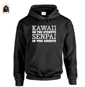 Being a part of the Otaku community means knowing some phrases that are used quite often! To show off these eclectic phrases, we found a fun hoodie that's great for guys and girls alike! Ranging from black all the way to cotton candy pink, this hoodie proudly displays the saying "Kawaii in the Streets, Senpai in the Sheets" as an Otaku twist on the original popular phrase. There's no denying you laughed a little, and we guarantee you it's the best gift to give your Otaku friends and family. Everyone loves hoodies, and everyone loves sayings that both show off their interests and make someone smile. What more can you ask for than a hoodie with a hilarious saying that everyone in the Otaku world can enjoy?!